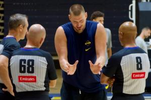 卷到裁判身上了!对抗训练后 约基奇拉着裁判问了20分钟问题