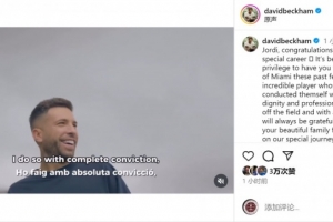 体育资讯10月8日讯 阿尔巴将在本赛季结束后退役,迈阿密国际老板贝克汉姆社媒发文致敬。