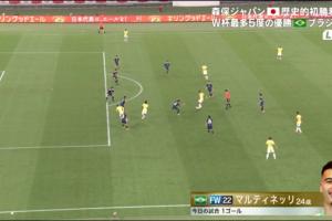 体育资讯10月14日讯 国际友谊赛麒麟挑战杯,日本队主场迎战巴西队。比赛第32分钟,马丁内利凌空斩破门,巴西客场2-0领先日本。